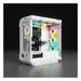 Corsair iCUE 5000T RGB. Form factor: Midi Tower, Type: PC, Product colour: White. Supported power supply form factors: ATX. Front fans installed: 3x 120 mm, Front fans diameters supported: 120,140 mm, Rear fans diameters supported: 120 mm. Supported HDD sizes: 2.5,3.5", SSD form factor: 2.5". Width: 251 mm, Depth: 530 mm, Height: 560 mm