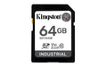 Kingston Technology 64G SDXC Industrial pSLC. Capacity: 64 GB, Flash card type: SDHC, Flash memory class: Class 10, Internal memory type: UHS-I, Read speed: 100 MB/s, Write speed: 80 MB/s, UHS Speed Class: Class 3 (U3), Video Speed Class: V30. Protection features: Temperature proof, Waterproof, X-ray proof, Product colour: Black